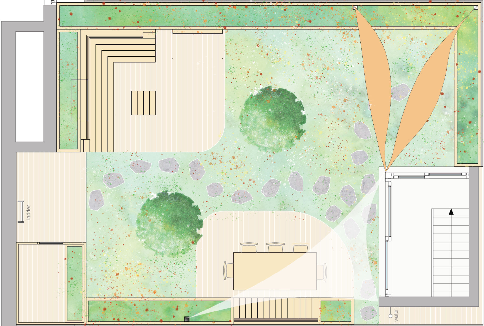 We scannen de situatie op het dak in, maken een daktechnisch ontwerp en een tuinontwerp. Wij verzorgen ook de vergunningsaanvraag bij de gemeente en stemmen het ontwerp af met onze uitvoeringspartners.
