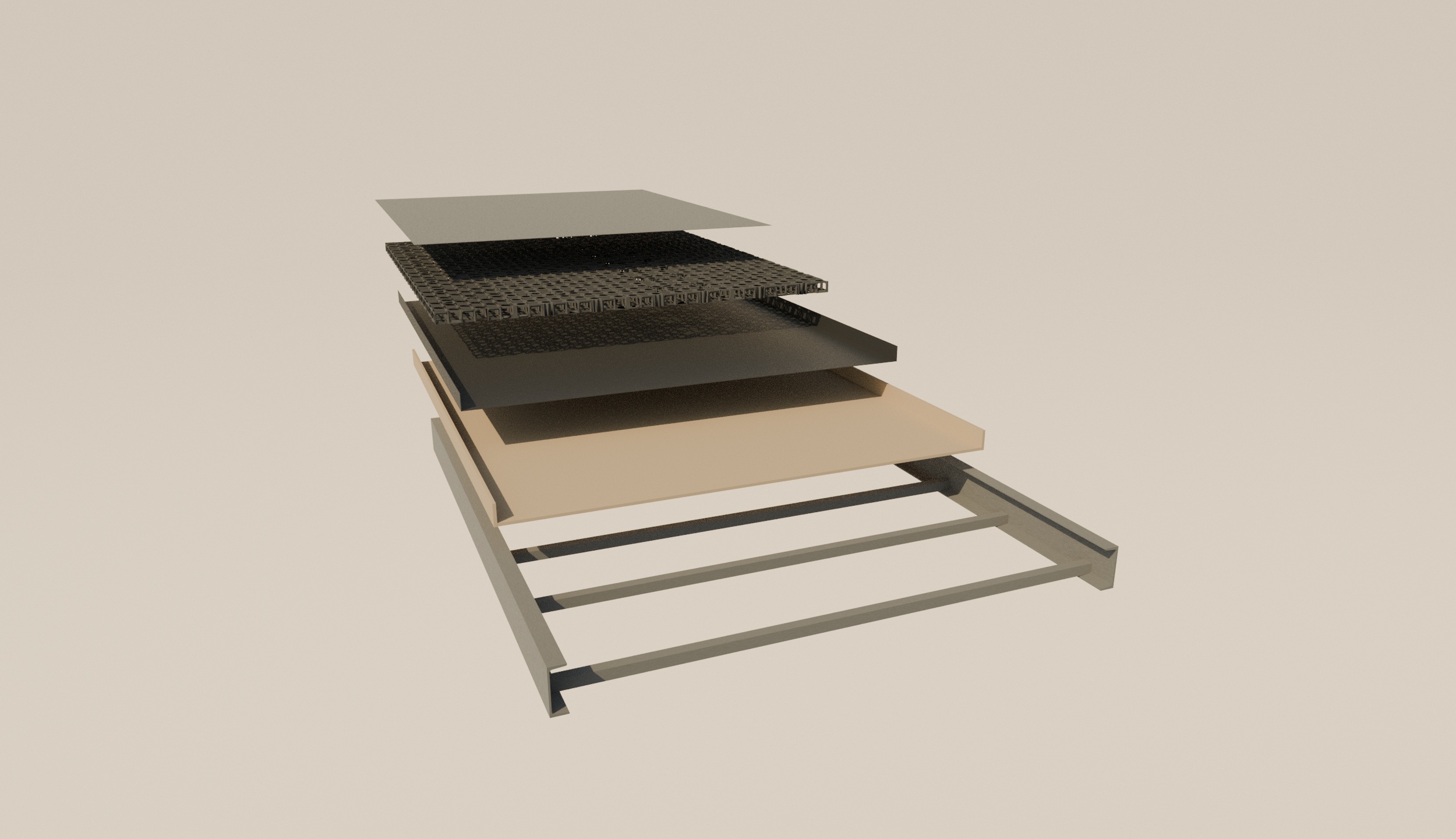 Onze partner maakt op basis van ons ontwerp prefab-elementen. Deze bestaan uit een staalconstructie die op maat wordt gemaakt voor jouw dak, inclusief uitsparingen voor bestaande ventilatieafvoeren, schoorstenen of dakramen. Op het stalen frame wordt een waterdichte bak gemaakt, met daarin een laag voor waterdrainage. Dit voert regenwater vertraagd af, wat wateroverlast op straat voorkomt.
